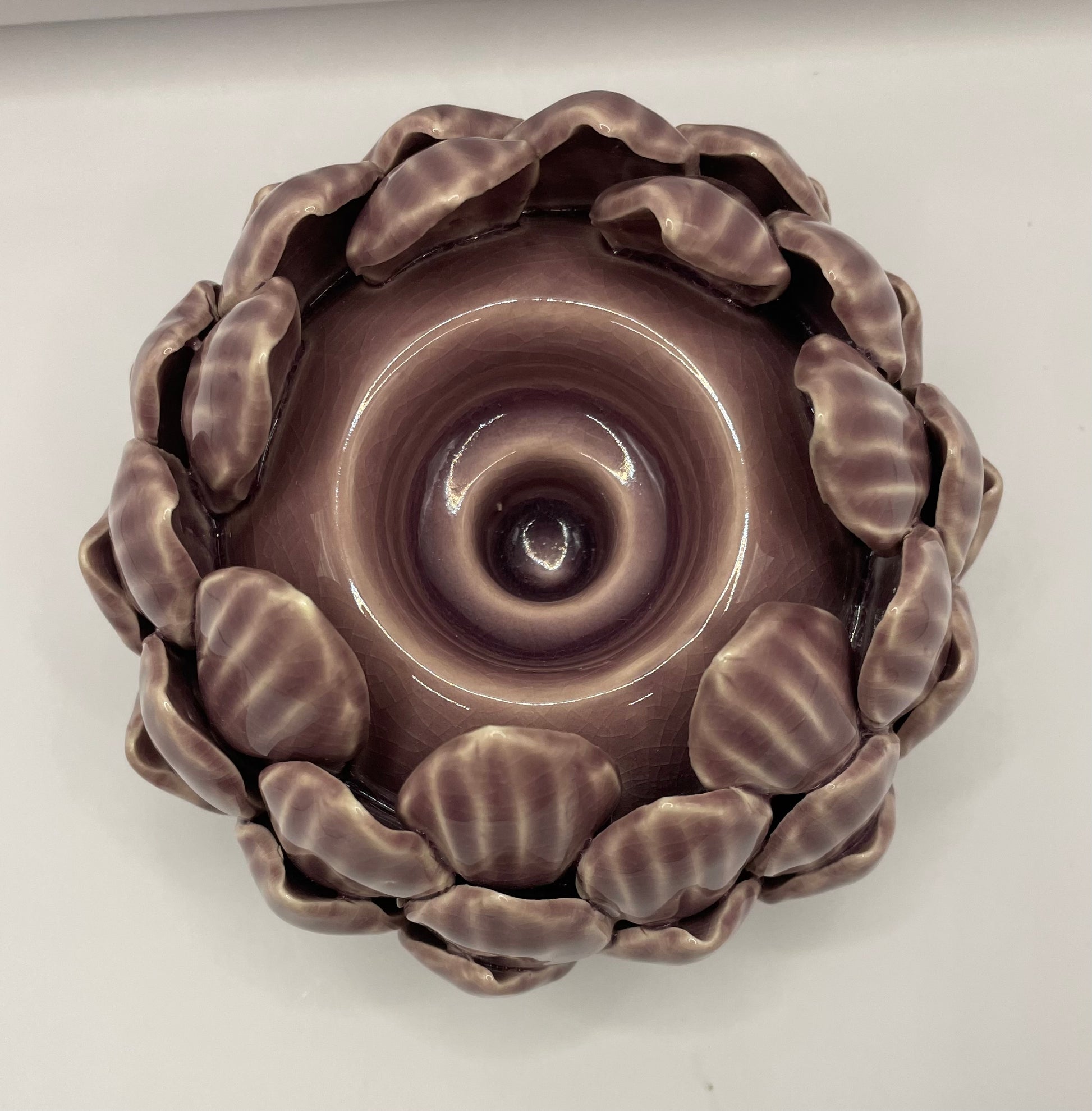 Waxine/kaarshouder keramiek floral lila 13 x9 cm